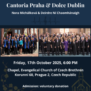 We invite you all to a concert of our choir Cantoria Praha and our dear guests choir Dolce Dublin, who will come all the way from Ireland to sing with us.